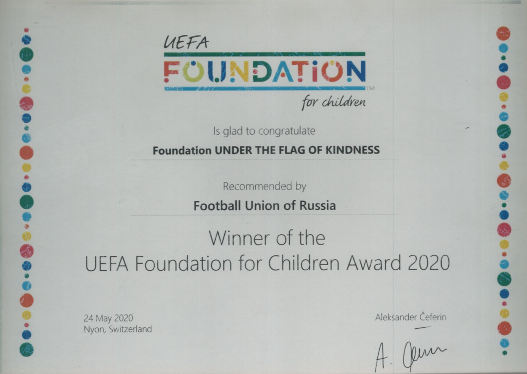 Каждый ребенок, увлекающийся футболом, мечтает однажды стать известным футболистом и выступать под флагом своей страны на международной арене. Дети с нарушениями здоровья, которые вынуждены жить в рамках строгих медицинских предписаний, сироты, которым не хватает внимания – не исключение. Для полноценной жизни и всестороннего развития им недостаточно финансовой и медицинской помощи, им необходима социальная адаптация, активная деятельность, которая проявит их жизненную энергию, пространство для творчества и общения, возможность реализовывать свои мечты. Поэтому Фонд придумал для детей турнир «Под флагом добра» – настоящий турнир, в котором принимают участие дети из разных стран, проживающие в г. Москве, получают медали, участвуют в торжественных церемониях – как взрослые, профессиональные футболисты.